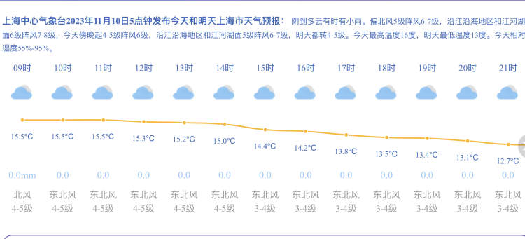 今天阴到多云有时有小雨,仍会有弱回波影响,出门最好备把小伞。今晨6至7时,全市大部气温在14-15℃,偏北风5级阵风6-7级,沿江沿海地区和江河湖面6级阵风7-8级。预计今天最高气温也就止步于16℃。傍晚起风力减小,4-5级阵风6级,最低气温13℃将出现在晚间。