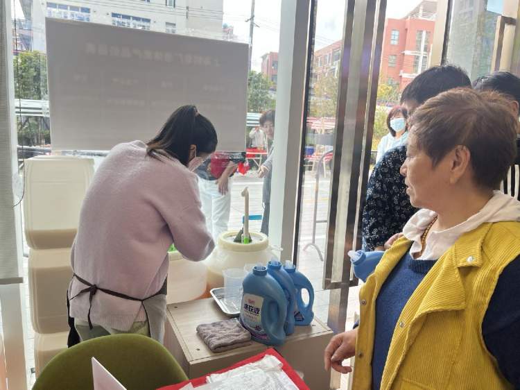 11月8日上午10点,大桥街道慈善超市门口排起长长的队伍,很多爷叔阿姨提着空的矿泉水瓶和洗衣液瓶,原来是上海制皂“零拷”洗衣液回归。当天,上海制皂携手杨浦区慈善超市增设两个零拷销售网点正式营业,分别是上海市杨浦区大桥街道慈善超市、长白街道慈善超市。