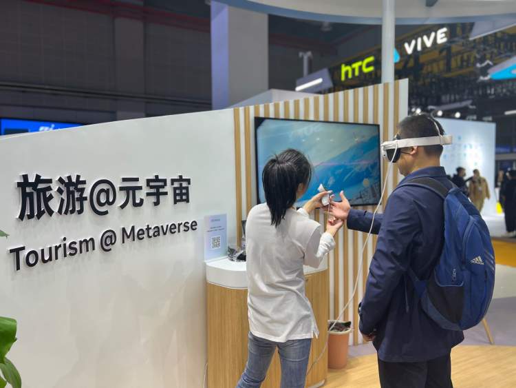 在本届进博会上实现“中国首秀”的Meta新款MR头显Quest3,结合旅游、医疗、体育等板块带领观众体验混合现实的游戏,据现场工作人员介绍,这款头显具有透视模式,即使试戴者正在进行游戏或者其他沉浸式体验,也可以随时切换回现实环境,真正做到“虚实相生”。