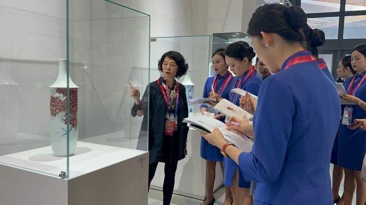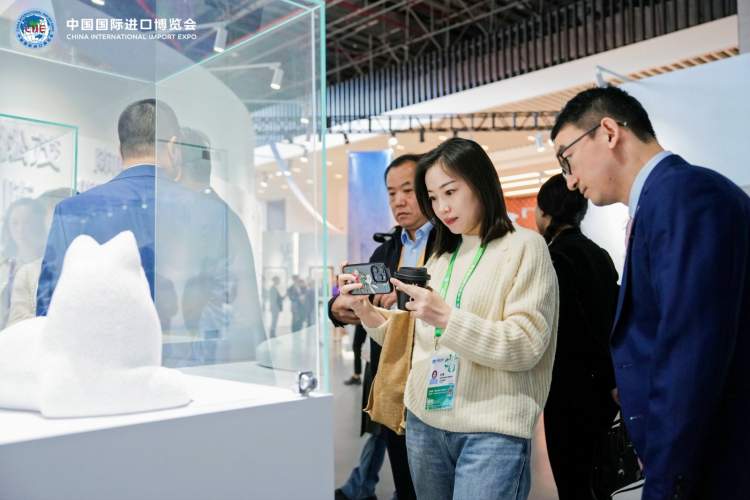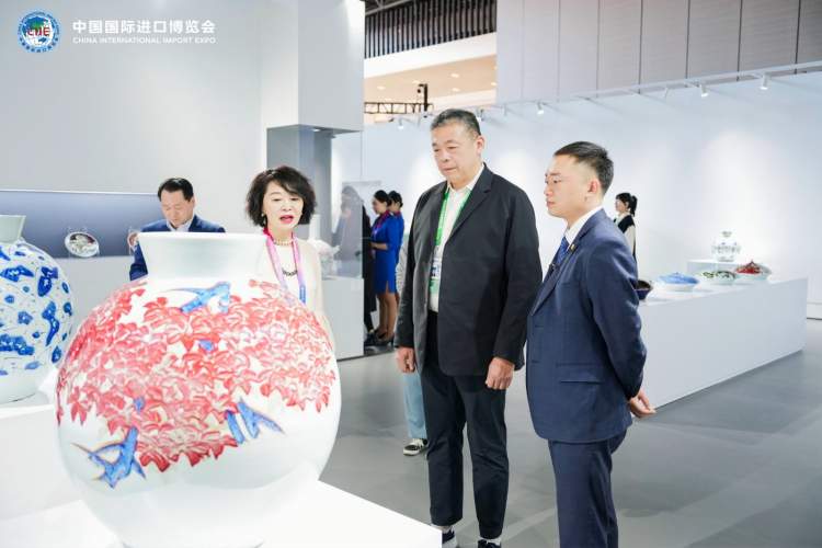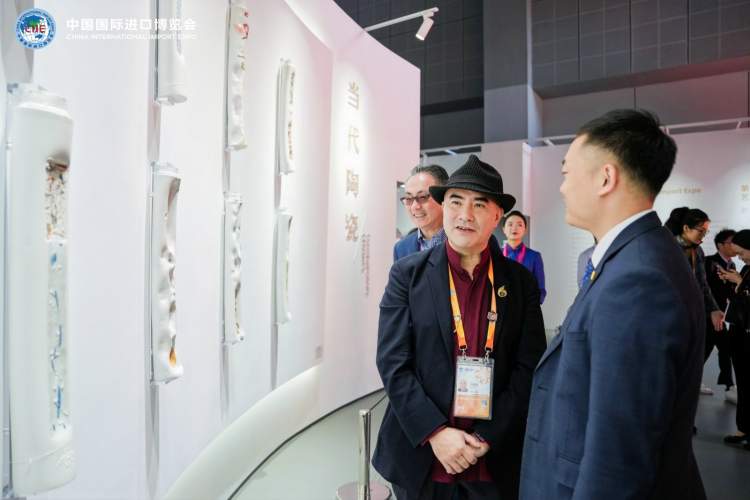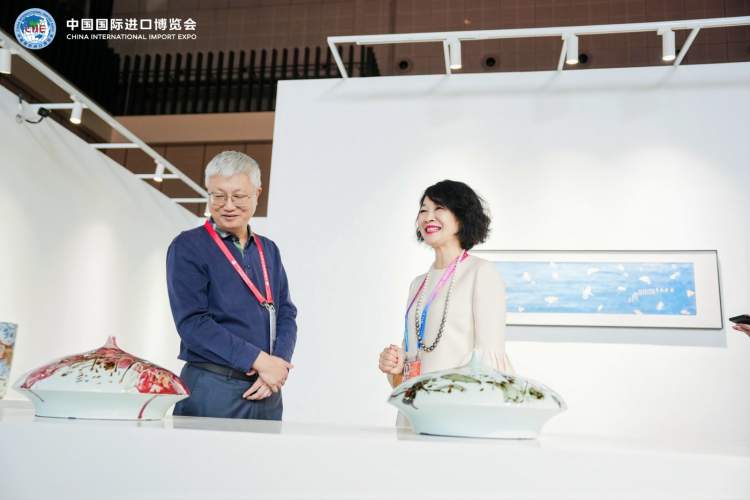今天,在进博会艺术精品专区,通过老中青三代中国艺术家创作的陶瓷精品,继续向世界传递当今中国文化的自信自强。