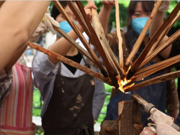 传统瓷器烧制短则数小时,长则数日,用坑烧法则可以现场体验瓷器烧制的过程,挖出土坑,堆上柴火,期间还可以借着火势烤些好吃的,大家一起守着自己的小小器件逐渐变硬、变透,经过烈火洗礼成为瓷器,成为难忘的美妙回忆。