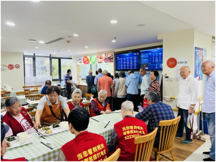 新虹街道现有户籍人口3.2万,其中60岁以上的老年群体达1.2万,约占户籍总人口的34%,且独居、空巢和高龄老人比例与日俱增。为了缓解老年人吃饭问题,街道深入推进老年宜居社区建设,试点推出了“社区食堂+助老餐+送餐”的为老服务模式。