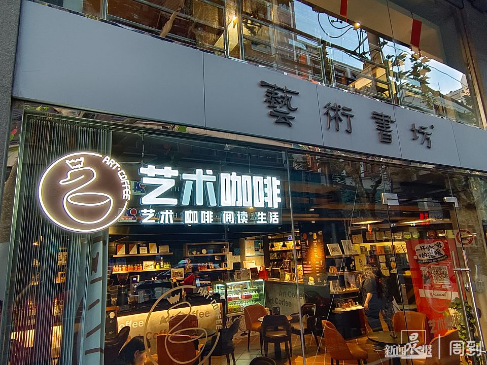 在福州路,记者发现艺术书坊和百新书局设置了咖啡区域,艺术书坊靠福州路落地玻璃上的“艺术咖啡”字样非常醒目;经记者与书店方面确认,外文书店、旧书店、上海古籍书店目前没有提供咖啡服务。