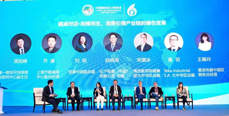 第六届进博会可持续消费高峰论坛暨绿色智能家电家居专委会、可持续时尚及生活方式专委会高峰论坛上,国家会展中心(上海)总裁宁风,商务部消费促进司一级巡视员耿洪洲,上海市商务委员会二级巡视员李泓,瑞典驻上海总领事司梅女士(大使衔),上海市外商投资协会会长黄峰等出席活动。