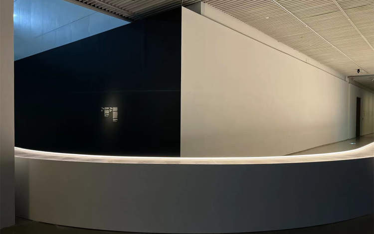 位于三楼的展厅,也是展览正式的开端,白盒子里的黑盒子群组,高低前后错落,与人形成奇妙的尺度关系,俨然是一座没有表情的电影之城。