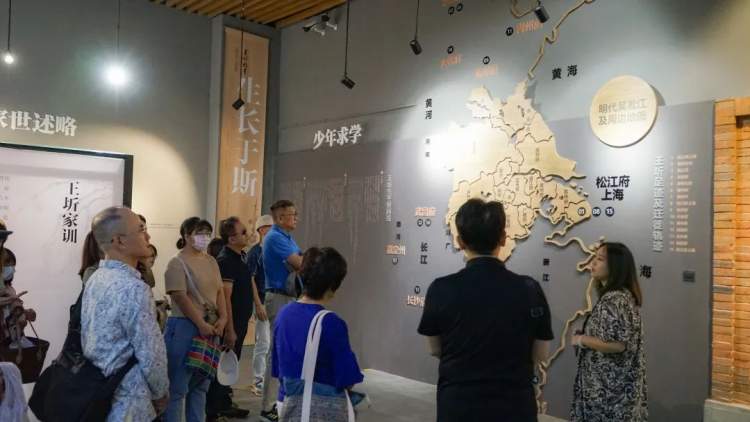 明代文献学家、藏书家王圻曾在吴淞江畔即现今华漕一带度过60多年,留下了《三才图会》《续文献通考》《稗史类编》等宝贵的文化和精神遗产。今年8月,王圻故里·苏州河第一村展陈馆正式开馆,从5个板块展现了王圻生平和他的传世著作及今日赵家村和明日虹桥前湾,描绘未来华漕城野无界的动人场景。教师们跟随展馆讲解员的介绍,边走边看,了解王圻的一生和他的典籍著作。