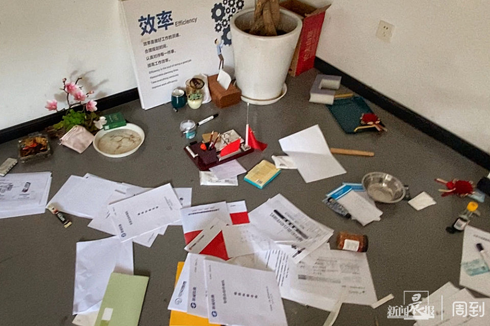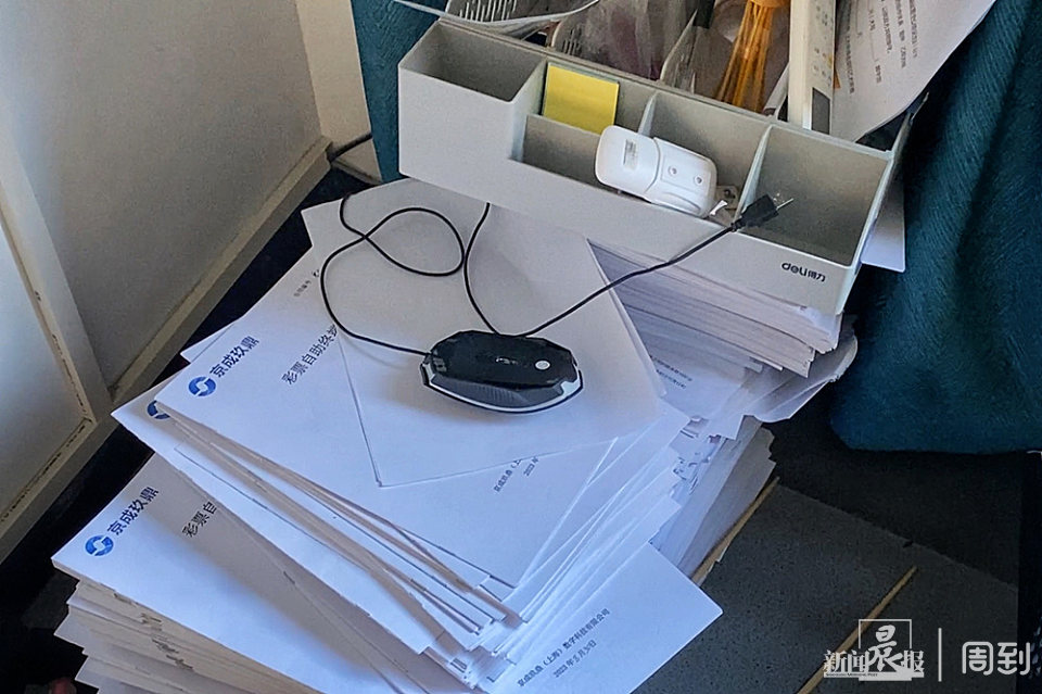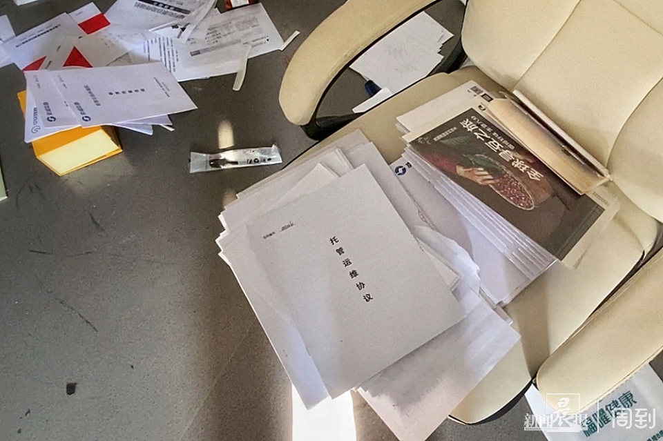 ▲七云合亿公司人去楼空,合同被随意地扔在地上