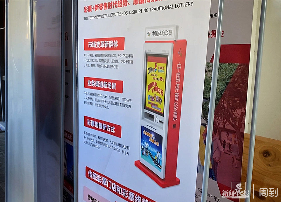 ▲宣传自助彩票机项目的易拉宝