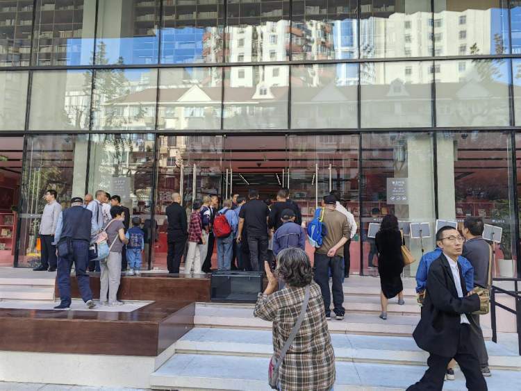 时隔两年,上海书城闪亮登场。金灿灿的“上海书城”四个大字为福州路上翻开了文化地标的崭新一页,近期不少市民读者前往这个闻名上海的书香殿堂打卡,上午九点半不到就有不少市民读者等开门。