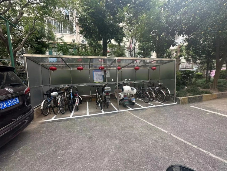 步入静安区大宁路街道的延长新村小区,映入眼帘的是一个个崭新的非机动车棚。这些车棚不仅有美观的外表,空间也很宽敞,还加装了充电端口,解决了小区停车难、充电难的问题。