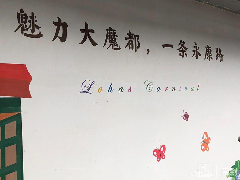 A 薛勇敏:第一件事,在街道支持下,由永康路的经营管理公司派丰永康出资,我们在街角的外墙做了一个非常漂亮的墙绘,同时把永康路的LOGO和口号都发布在上面,所以这样永康路就有了属于自己的IP。