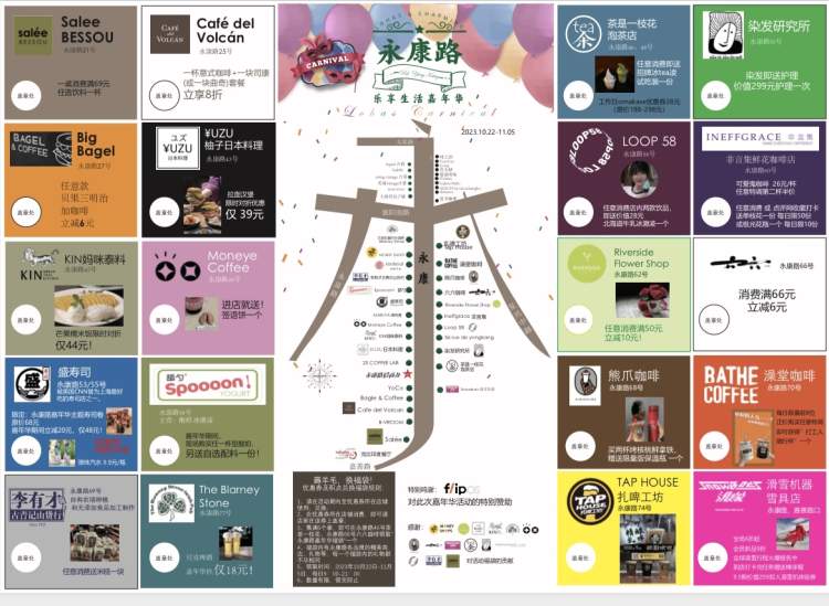9月份,薛勇敏有了一个计划,他拉上两家咖啡馆的主理人,一起做了一份永康路“乐享生活嘉年华”的策划,联合30多家商户之间共同发起活动”。