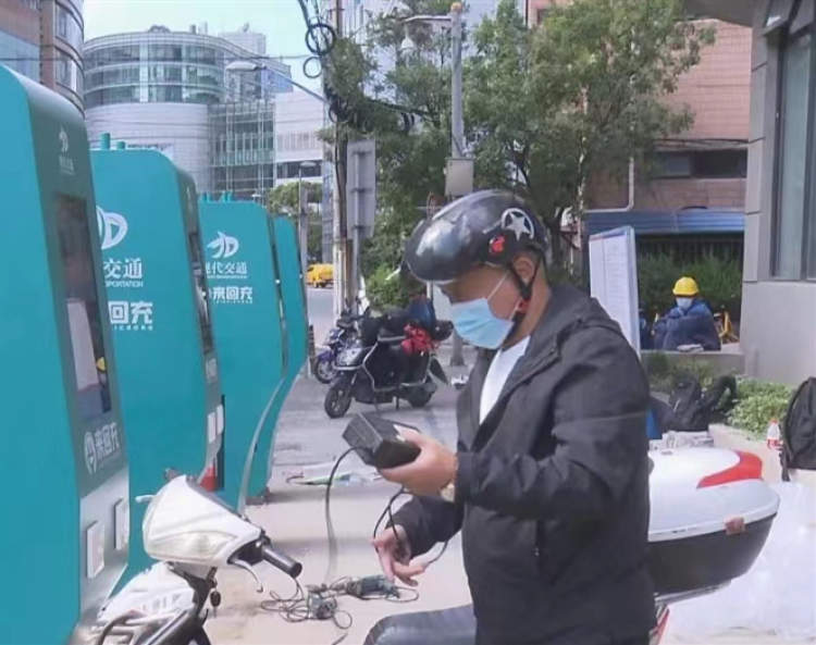 ▲“街头站立式非机动车充电桩”方便市民安全充电