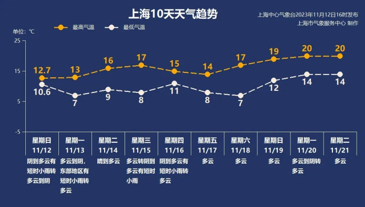气温方面,昨天上海的最高、最低气温均创徐家汇站今年下半年以来新低,白天体感偏冷。