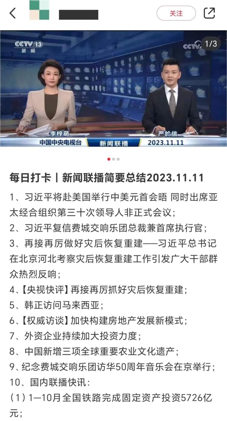 #每一次创新都被网友见证 从短视频平台上的新闻消息切条发布,到逐条剖析每日新闻释放的重要信息,再到每日打卡跟读联播文稿……每个人都能从中找到与自己工作生活的关联之处,人人都是扩大栏目影响力的“联播员”。正因如此,《新闻联播》的每次改变也被网友一次次见证。