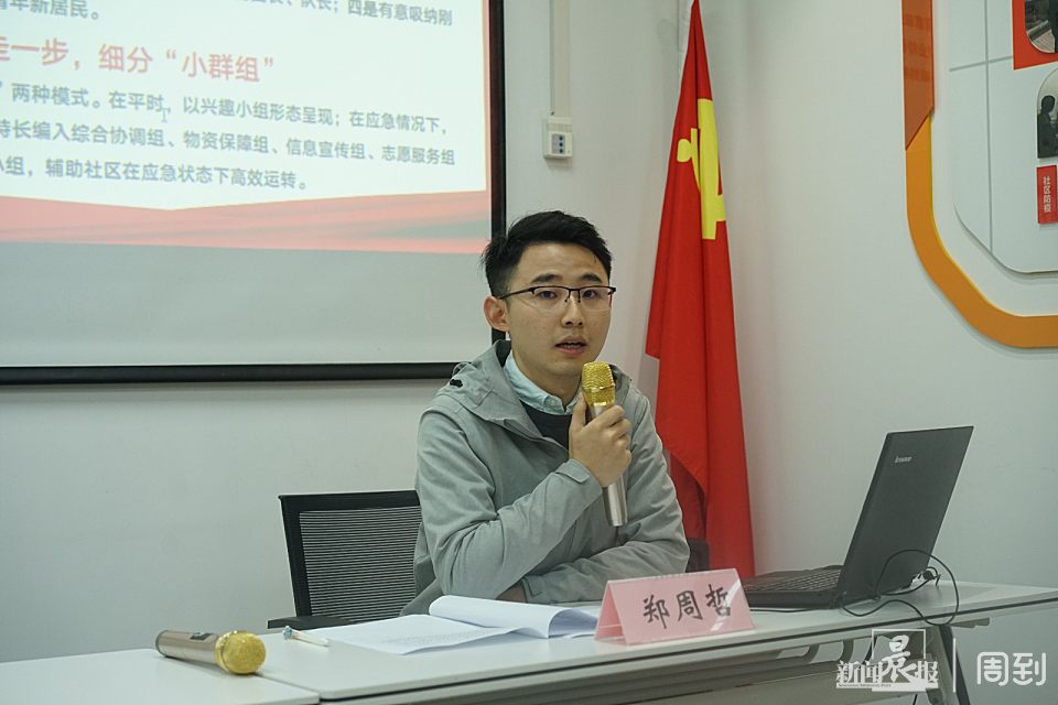 值得一提的是,首场实训的地点的选择别具特色,特别选在静安区芷江西路街道城上城居民区。据城上城居民区党总支书记郑周哲介绍,城上城社区是共青团城市基层组织改革试点社区。当天,郑周哲还为大家分享了“三步走”“三定位”“三破圈”的试点工作经验。