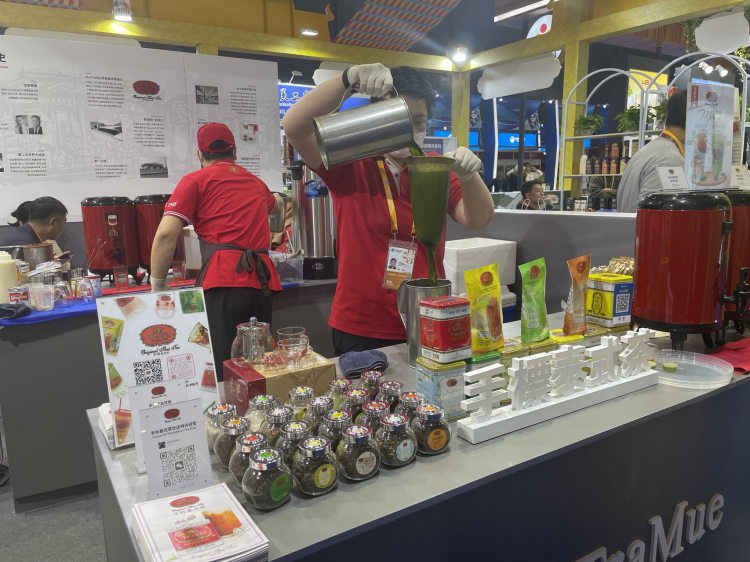 ChaTraMue手标泰式茶作为泰国茶饮行业的代表,自创立以来一直致力于提供高品质的泰式茶饮茶叶产品。在进博会的首次亮相中,现场向大家不仅展示了传统泰式茶的制作过程,还带来了30多种零售产品及包装,其中包括传统的泰式红茶、绿茶、茉莉花茶、玫瑰花茶、乌龙茶、阿萨姆红茶等以及其他特色茶饮。展台吸引了众多参观者,引发了广泛的兴趣和好评。