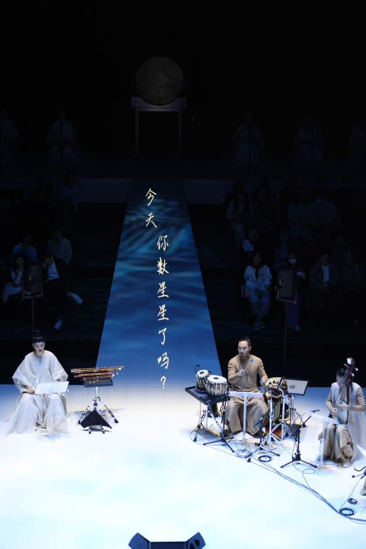 “今天,你数星星了吗?”当通道上缓缓出现一行字,国乐与光影交融,给予观众们充分的想象空间:清脆的铃铛声和轻轻的拨弦声反反复复地响起,却又留有余韵。乐队带着观众一颗一颗数起星星,夜的静谧,自然的美好,令人拍案叫绝。