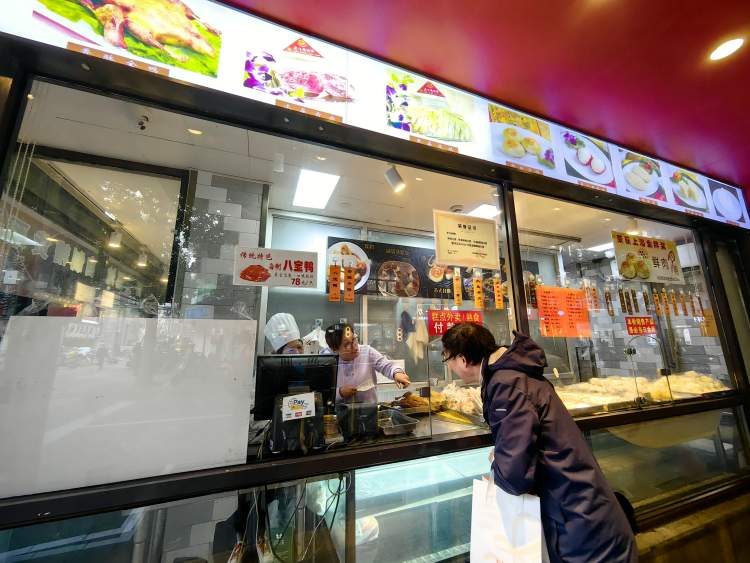 老半斋也不例外,外卖窗口也是福州路上的老网红。每当刀鱼季和过年前,总会有不少老上海人在这里排队购买外带美食。