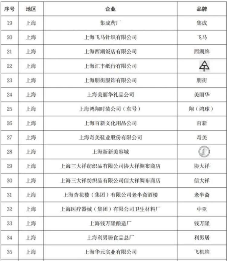 在没有通过中华老字号复核的品牌中,上海有17个品牌,包括老半斋、飞马、西湖牌、朋街、美丽华、百新、信大祥、协大祥等。