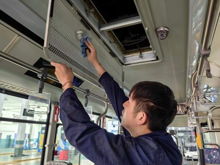 本轮维保重点是对暖风机、空调线路和水暖管道等设施进行检测,及时修复发现故障,确保车载空调系统运转正常,同步对空调出风口及过滤网罩进行清洗,确保送风功能良好,让乘客体验更舒适的乘坐环境。