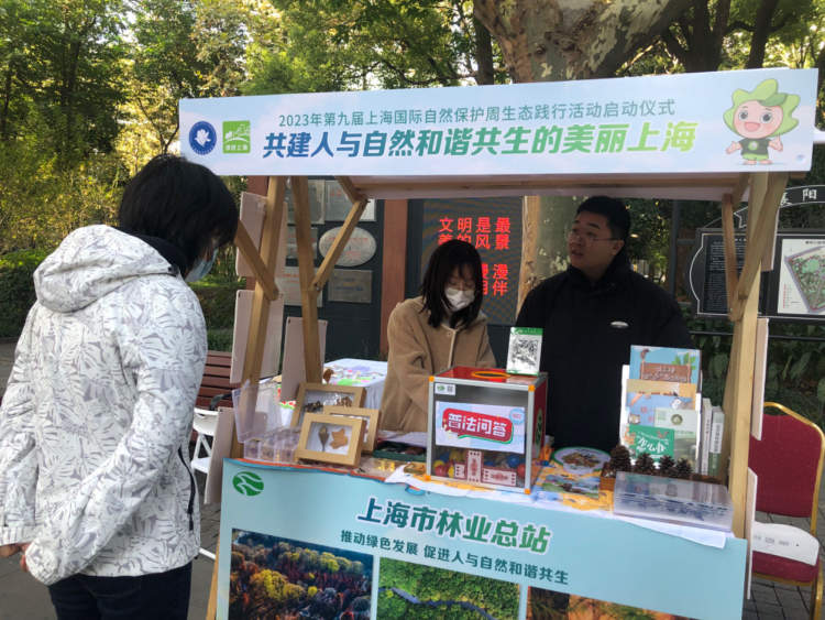 今天的生态践行活动以襄阳公园等绿色开放空间为主阵地,通过设置“关乎自然,关‘沪’未来”公益市集,融入科普元素,让市民在自然环境中感受科学魅力。