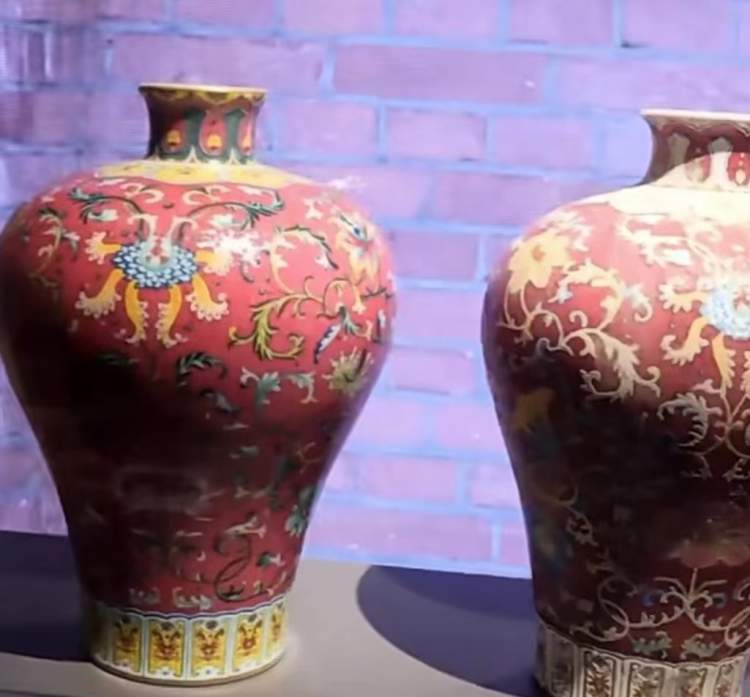 我们来看一下乾隆时期的瓷瓶是怎么样一步一步变成一个杰作的?首先是一个粉色的坯胎,而后开始雕镂一些花纹,再而后有了更加生动的图案,这样就开始上色了,最后变成一个完整的作品。