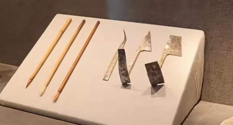 旁边是上彩用的毛笔,还有修边和去毛边的工具。