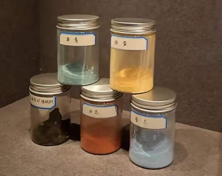 再往旁边看,就是相关的彩料,有草青色、浓黄色等等,这都是非常传统经典的颜色。