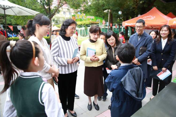 揭幕仪式前,与会嘉宾首先现场观摩了“蓬莱小镇”课程,通过情景营造,校园化身涵盖超市、邮局、银行等48个场景课程的微型社会“蓬莱小镇”,所有师生化身“镇民”,巴士教室、书展购书体验、我是消防员……小小社会人角色体验,使学生了解自己,认识社会,展望未来。