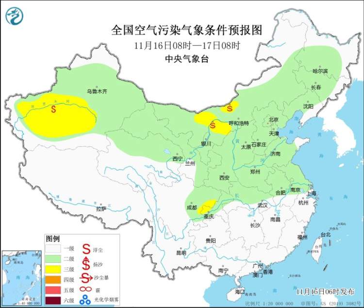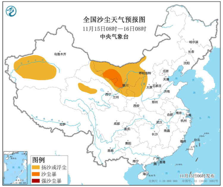据中央气象台的消息,受冷空气大风影响,15日白天,新疆南部、内蒙古中西部、甘肃西部、宁夏、青海北部、陕西北部、山西西部等地的部分地区自西向东有扬沙或浮尘天气,其中内蒙古西部、甘肃西部局地有沙尘暴。中央气象台11月15日08时继续发布沙尘天气预报。
