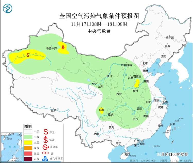 15日,华北中南部、黄淮西部、汾渭平原等地大气扩散条件较差,将有轻至中度霾。16日凌晨起,受冷空气影响,上述地区的霾天气自北向南减弱消散。19日夜间至21日,华北中南部、黄淮等地大气扩散条件将再度转差。