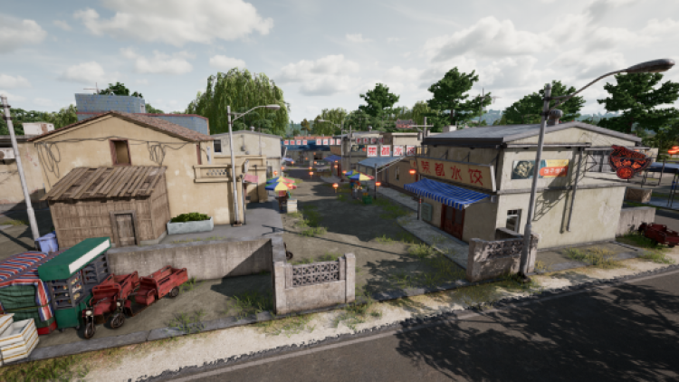 另一方面,为了提升荣都地图的游戏体验,PUBG引入了一些全新且只有在这里才能够体验到的游戏元素。比如官方在地图各处设置了可以被破坏的竹子,无论是使用投掷武器、近战武器还是车载工具,玩家都能轻易将这些竹子折断破坏,成为“武侠”穿梭在竹林中大概就是这样一种感受。