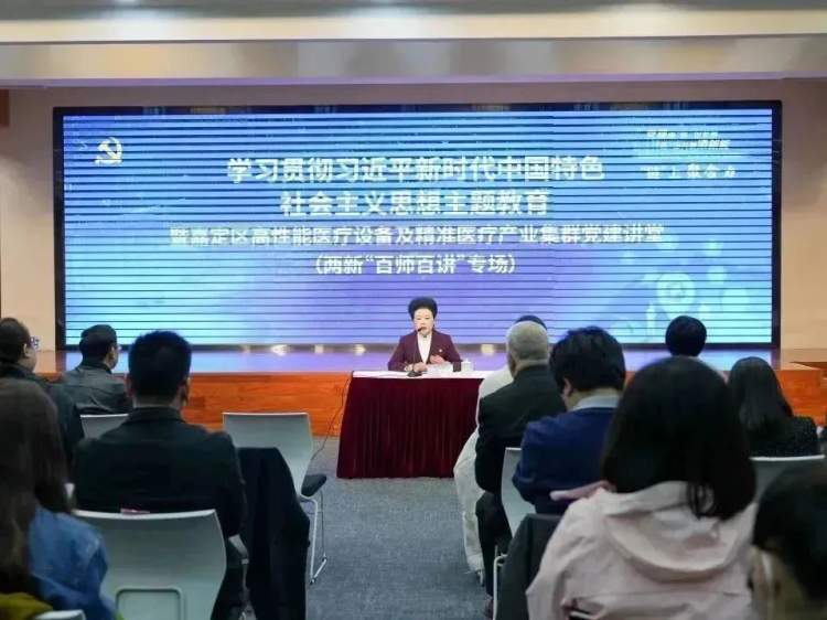 当前,正在深入开展第二批主题教育,为进一步做强产业链党建,为产业集群注入“红色动能”,活动最后开展了学习贯彻习近平新时代中国特色社会主义思想主题教育暨嘉定区高性能医疗设备及精准医疗产业集群党建讲堂,嘉定区产业集群党建讲堂导师赵宪珍作专题授课。