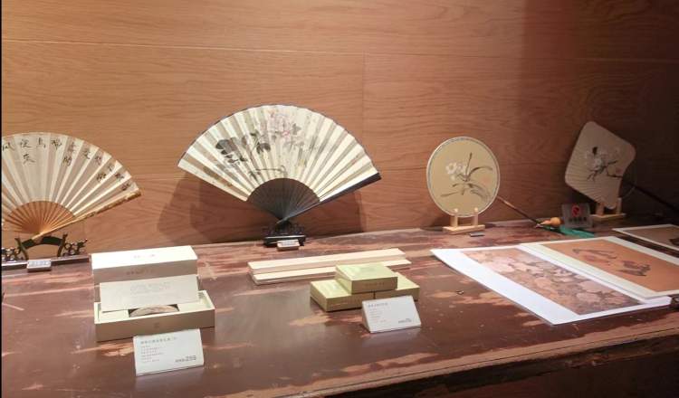 可以看到多种用红星宣纸做成的周边产品:装裱字画、折扇。