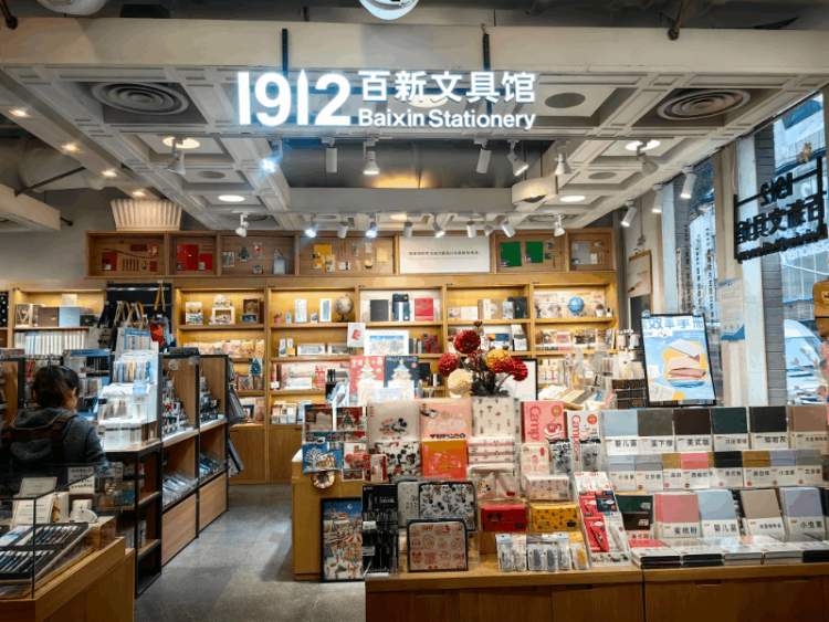 我们是经营了111年的企业,目前在上海,不少地方能看到“百新文具馆1912”的门店:福州路上外文书店里、全国(上海)新华书店、南方商城、尚悦湾广场、缤谷广场、正大乐城。