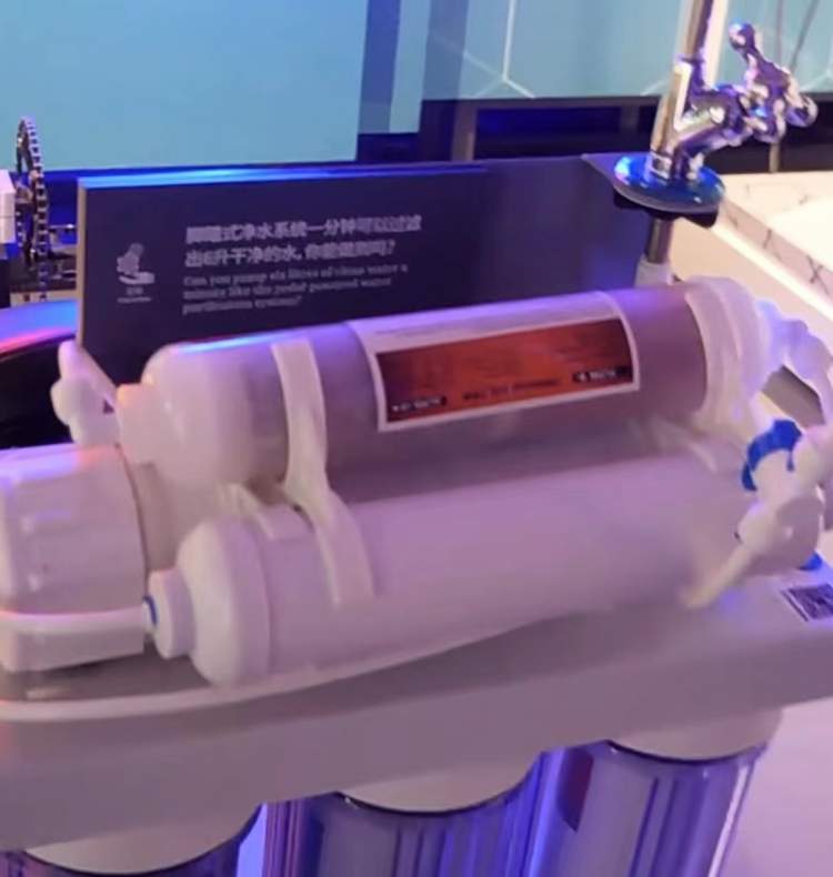 我们现在看到这样一部仪器,其实是一个净水装置,但是,它不用电,而是脚踏式的,不会造成任何污染,并且一分钟可以过滤出6升干净水。