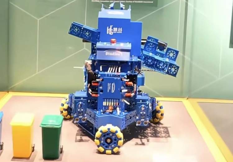 这里有一款捡垃圾机器人,会识别出不同类型的垃圾,然后放到该放的地方。这款机器人身上配备了先进的传感器和摄像头,能够精确地识别和分类可回收物、可堆肥物和不可回收物。