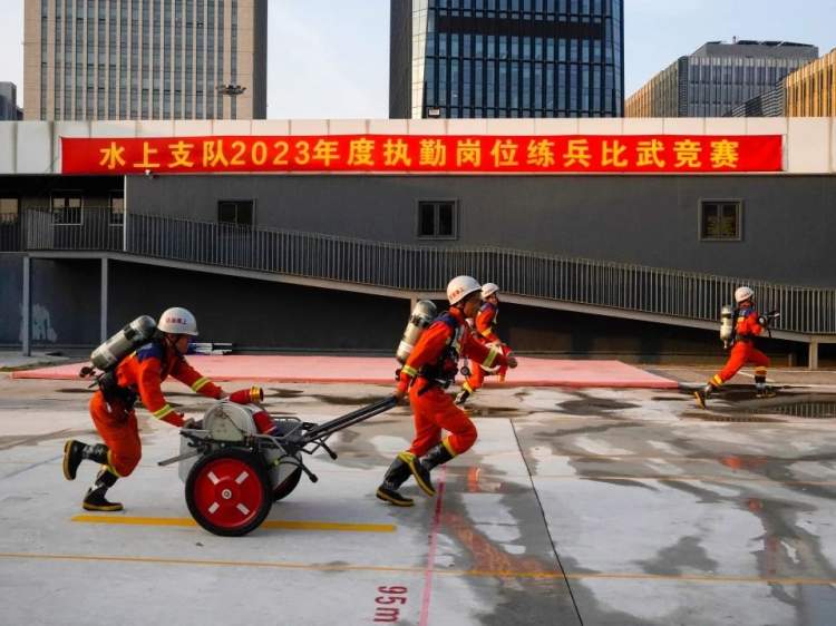 11月13日,为切实增强灭火攻坚与水域救援能力,上海市消防救援总队水上支队举行了2023年度执勤岗位练兵比武竞赛,来自外高桥站、水一站、水二站的60余名消防员参加了比赛。