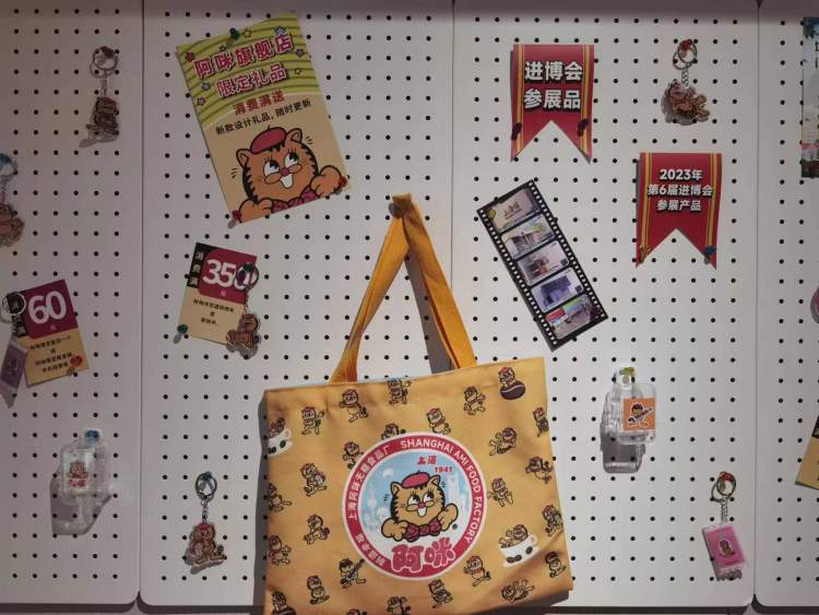 “1941年10月,阿咪的前身叫幸福食品号,就开在新闸路374号了,七十多年都没搬过,一直到两三年前老厂子就拆了。这里本来是老厂的食堂,最近在九百集团的支持下改了旗舰店和大家见面。”