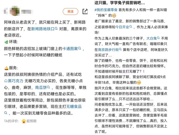“他们家的奶糖很好吃的。说起大白兔,全国人民都知道,说起阿咪,上海人都知道。大白兔奶糖是圆柱形的,阿咪奶糖是方块形的,但上海人一吃就知道,是两种不一样的老味道。”