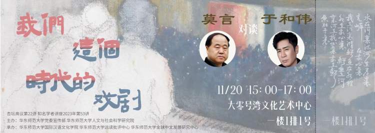 11月20日下午,在大零号湾文化艺术中心由华东师范大学主办的“我们这个时代的戏剧”活动上,莫言对谈于和伟,新闻晨报·周到也进行了全程直播(点击见链接),让我们看看两位嘉宾的精彩对话。
