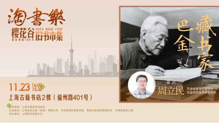 巴金先生无意做藏书家,然而,无论从藏书的数量、品质和专题性而言,他都逃不过“藏书家”这个头衔。讲座从巴金先生搜书、购书的经历,到他整理藏书的细事,以及最后捐书为社会所有的情怀,讲述藏书家巴金和他的藏书故事,也打开被小说家巴金光环所遮蔽的另外一个巴金的世界。今年11月25日是巴金先生诞辰119周年纪念日,这个讲座也是对他的纪念。