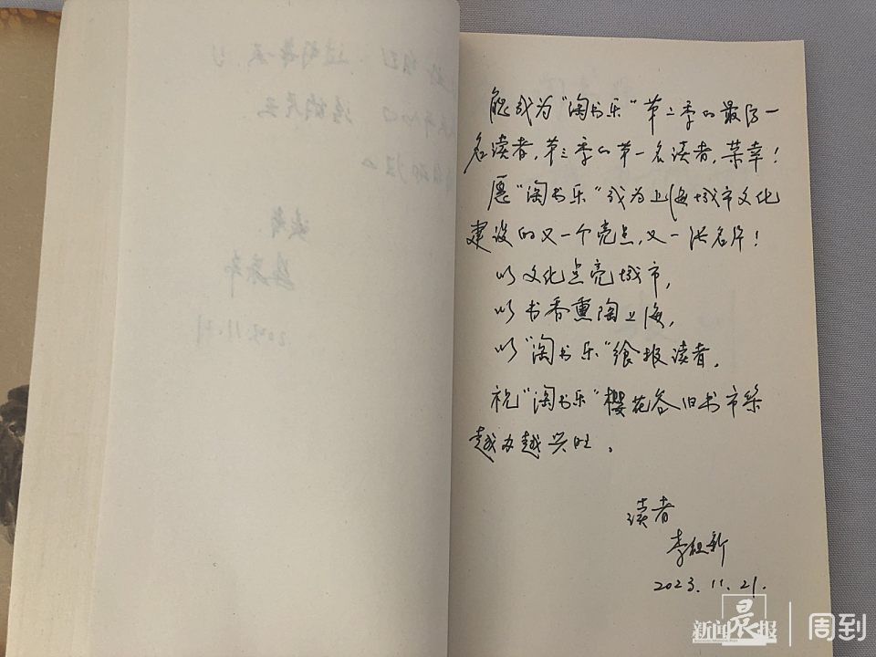 11月21日上午10点左右,记者赶到旧书市集时,现场已经有不少书友提前“占位”。读者李祖新是第三季旧书市集的第一位读者,也是第二季的最后一位读者,他当天上午在“读者寄语”上留言: