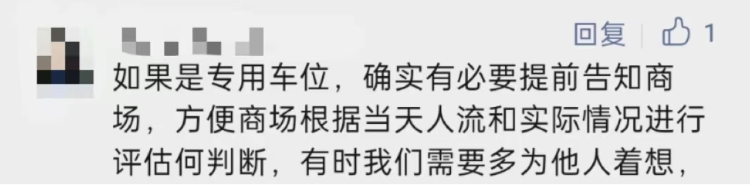 “如果是专用车位,确实有必要提前告知商场,方便商场根据当天人流和实际情况进行评估何判断。”