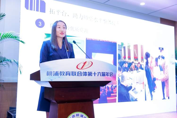 第十五届轮值主席、上海市桃浦中学校长夏青从“高位统筹推动,实现多元共治融合发展;优化机制内涵,增强联合治理发展效能;持续共享优质资源,在融合育人上下功夫”等板块系统介绍了桃浦联合体过去一年中在教育治理体系建设及育人方式改革等方面的探索实践,以及联合体各单位在多元共治、联合治理、课程组团、课堂教学改革以及跨校交流等方面取得的阶段性成果。