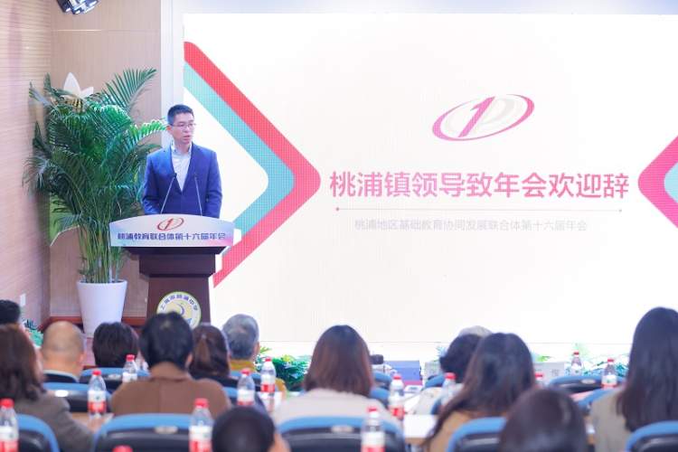 多年来,桃浦政府始终秉承教育优先发展战略,厚植为民育才的情怀,赓续育人兴邦的薪火。桃浦镇副镇长颜李佳在欢迎辞中对年会的召开表示热烈祝贺,并对长期奋斗在桃浦教育战线上的教职员工们表示感谢和敬意。他指出:桃浦教育人为桃浦教育新生态的构建、教育高质量发展提供了桃浦方案,贡献了桃浦智慧。每一个足迹都见证了桃浦教育人矢志不渝、自强不息的奋斗精神,每一次进步都展现了各成员单位戮力同心、携手共进的拼搏姿态,彰显了桃浦教育联合体的使命和担当。他表示,桃浦镇也将一如既往重视和支持桃浦地区教育事业的发展,把“办好人民满意的教育”作为我们工作的出发点和落脚点,助力桃浦教育事业高质量发展,与全镇广大师生一起共同书写美丽桃浦、美好生活的崭新篇章。