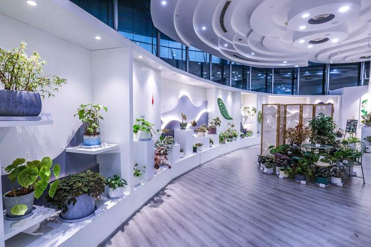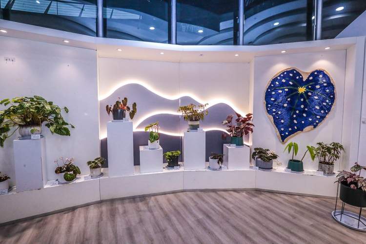 辰山植物园秋海棠展以“绚烂秋叶”为主题,共设置珍奇植物馆和共享展厅两个展区。其中,展览温室珍奇植物馆展示秋海棠的适宜的生存环境和群体之美,共享空间展厅展示精品秋海棠个体,展区将单一的空间打造成富有生气的流动空间,结合个性化的橱窗以及吧台、艺术展示墙等为秋海棠提供了一个灵动的展示空间。