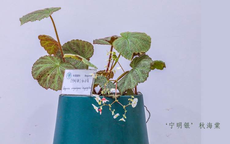 “宁明银”秋海棠由辰山植物园“观赏植物资源与种质创新研究组”的科研人员培育而成,2017年完成国际登录,成为我国首个实现国际登录的秋海棠品种。该品种全株“毛绒绒”,叶片近乎白色,株型好,十分美丽。“辰山银”秋海棠叶片颜色独特,上表面除了叶脉汇集处和叶边缘为浅绿色外,其余区域均呈银色,因此得名“辰山银”。