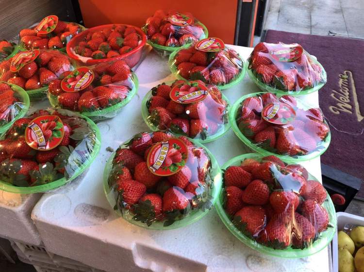 上海市场上除了本地草莓外,大量还需要从外省市“进口”,主要以浙江建德、辽宁丹东等地为主,其中丹东草莓主要走线上销售渠道。记者在一家买菜平台看到,300克产自辽宁丹东的章姬草莓今天的价格是29.9元,相当于一斤49.8元;红颜草莓300克是39.9元,相当于一斤66.5元。